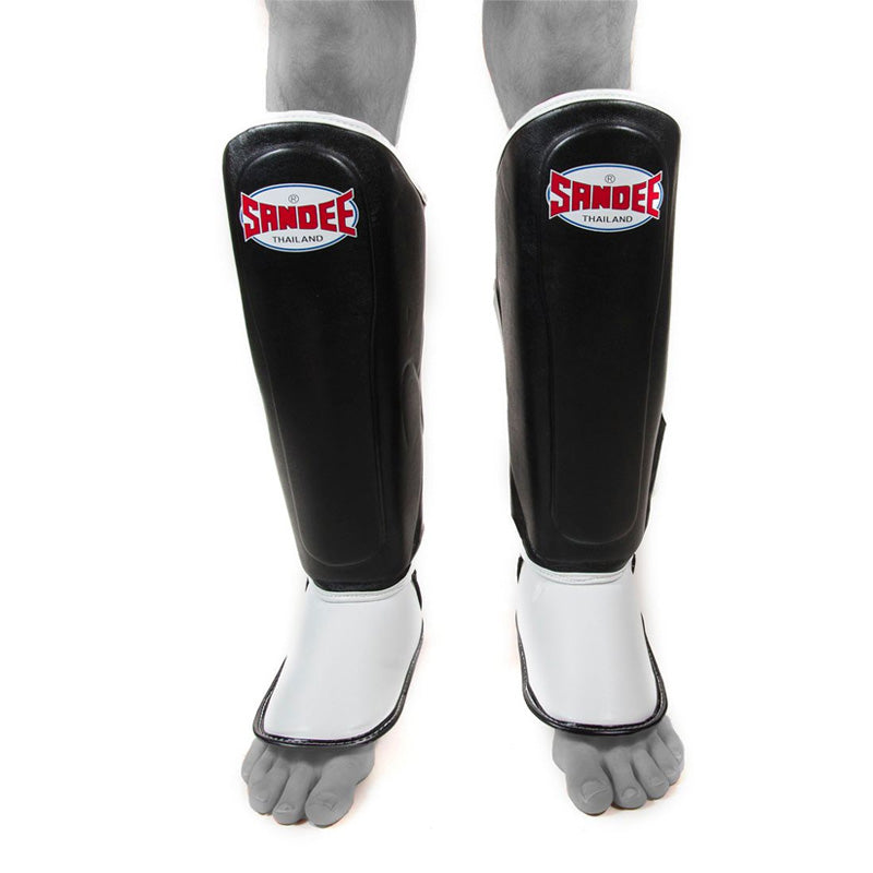 Raised knee area, additional contoured shin ridge, and full foot cover for ultimate shock absorbtion and additional safety in sparring